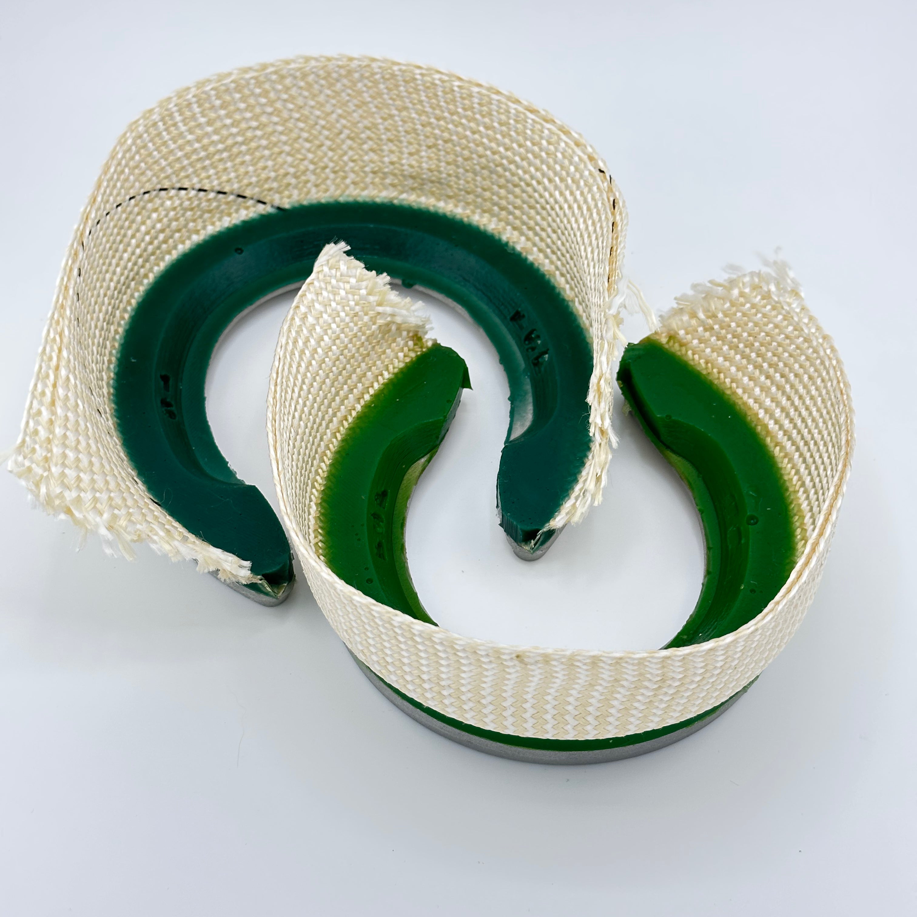 Born from a passion for horses and a commitment to their long-term well-being, we’ve developed orthopedic shoes designed to maintain soundness and promote longevity. Using an innovative indirect glue-on cuff system, our shoes avoid direct application of glue to the sole, ensuring the hoof’s natural integrity is preserved. Each shoe is set on a forgiving polymer rim pad, which absorbs shock, distributes weight and shock, and supports the horse's overall comfort and soundness.